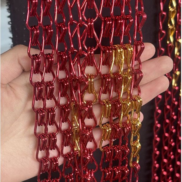 Also known as aluminum chain door curtain, is a kind of screen or partition used for decoration. It is made of 100% aluminum and is of excellent quality. Nowadays, chain curtain has become a popular decorative choice for modern people. It is used in residential or commercial areas. Aluminum chain curtain has the advantages of simple structure, light weight, convenient installation and disassembly. Chain curtain is relatively economical and more practical.
